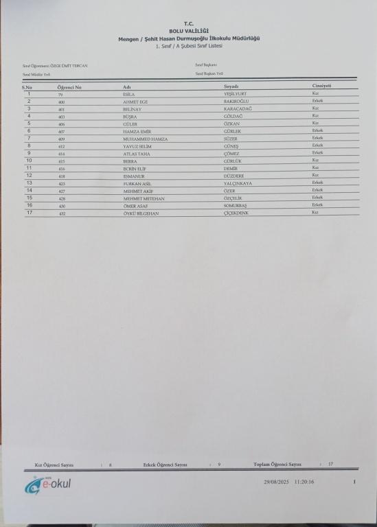 Kura sonuçlarını aşağıdaki listeden görebilirsiniz, okula yeni başlayan öğrencilerimize başarılar dileriz.